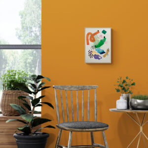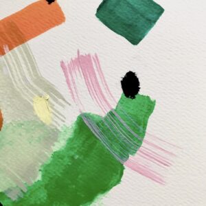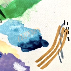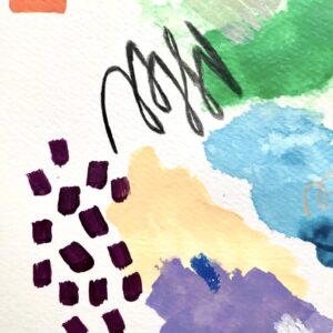Made with acrylic paint, pencil crayon, and oil pastel on watercolor paper.