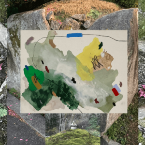 Made with acrylic paint, pencil crayon, and oil pastel on watercolor paper.