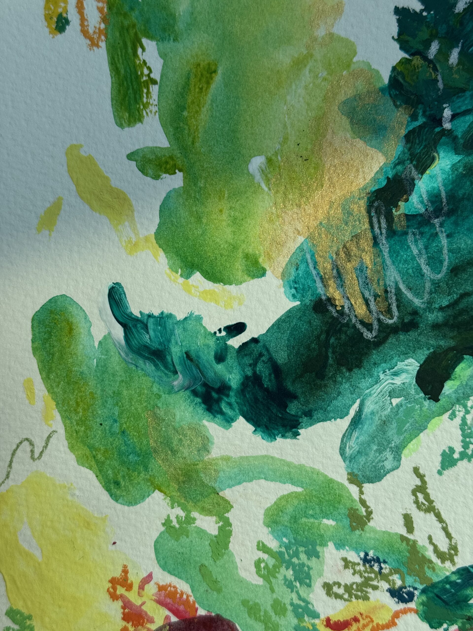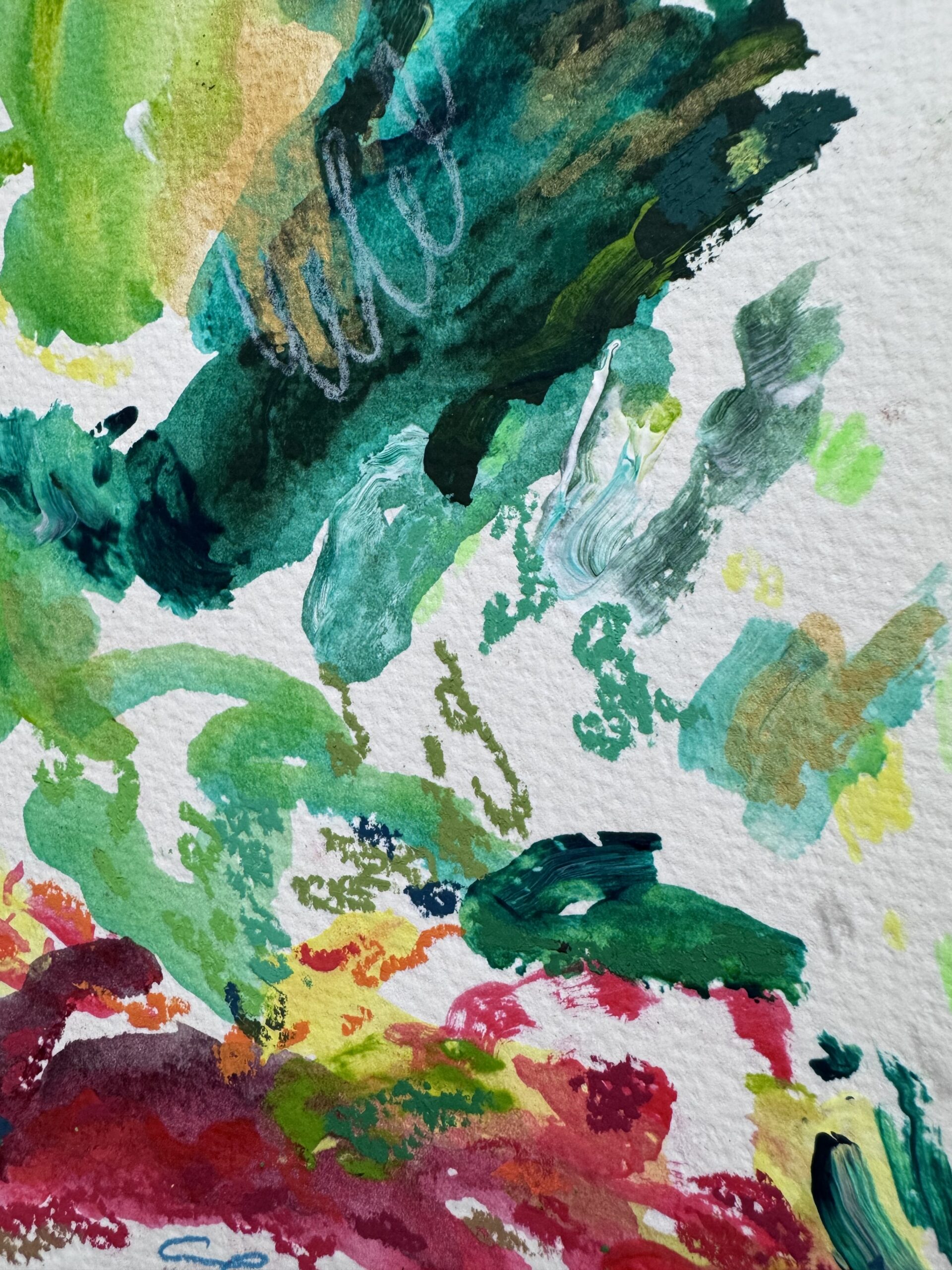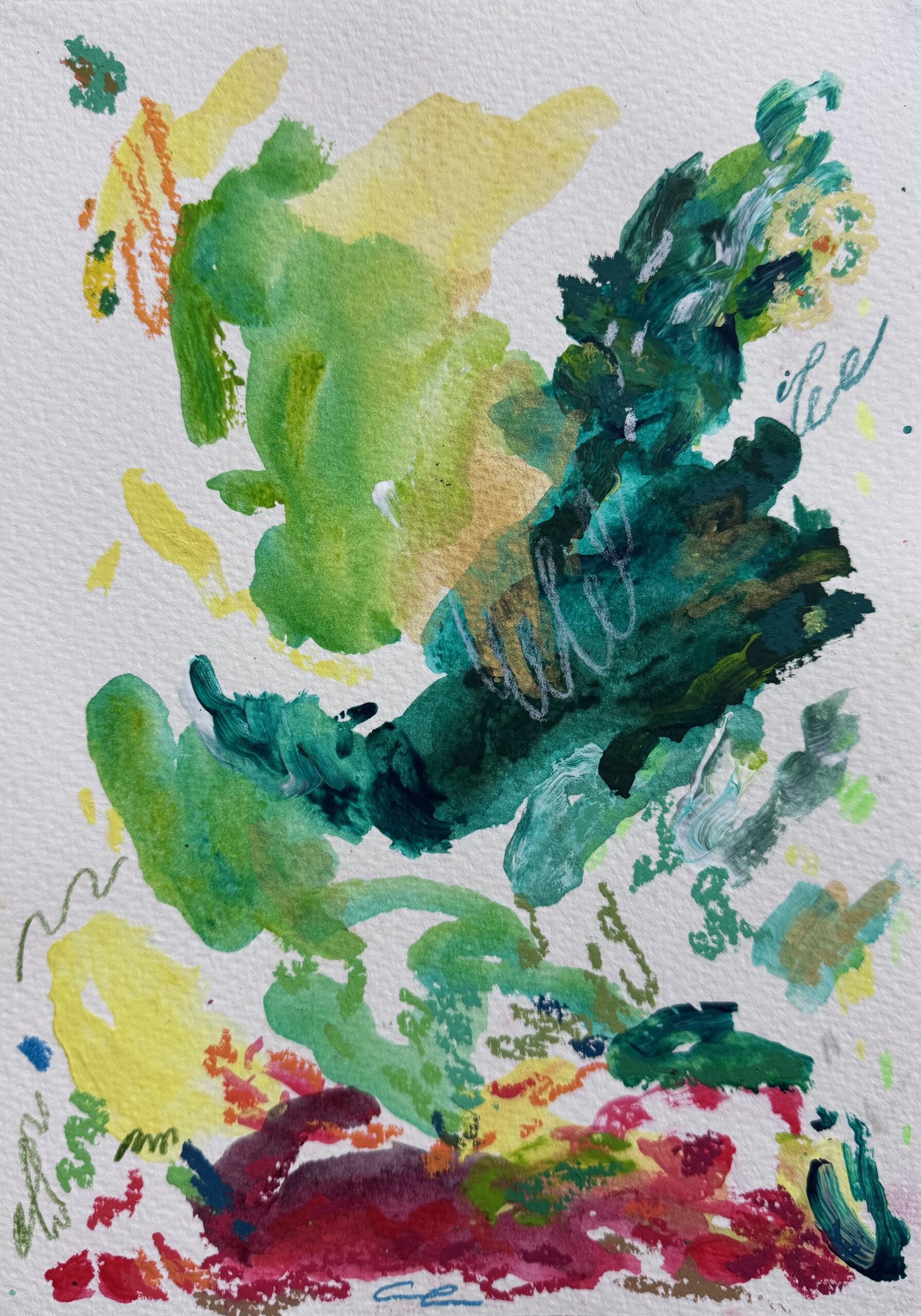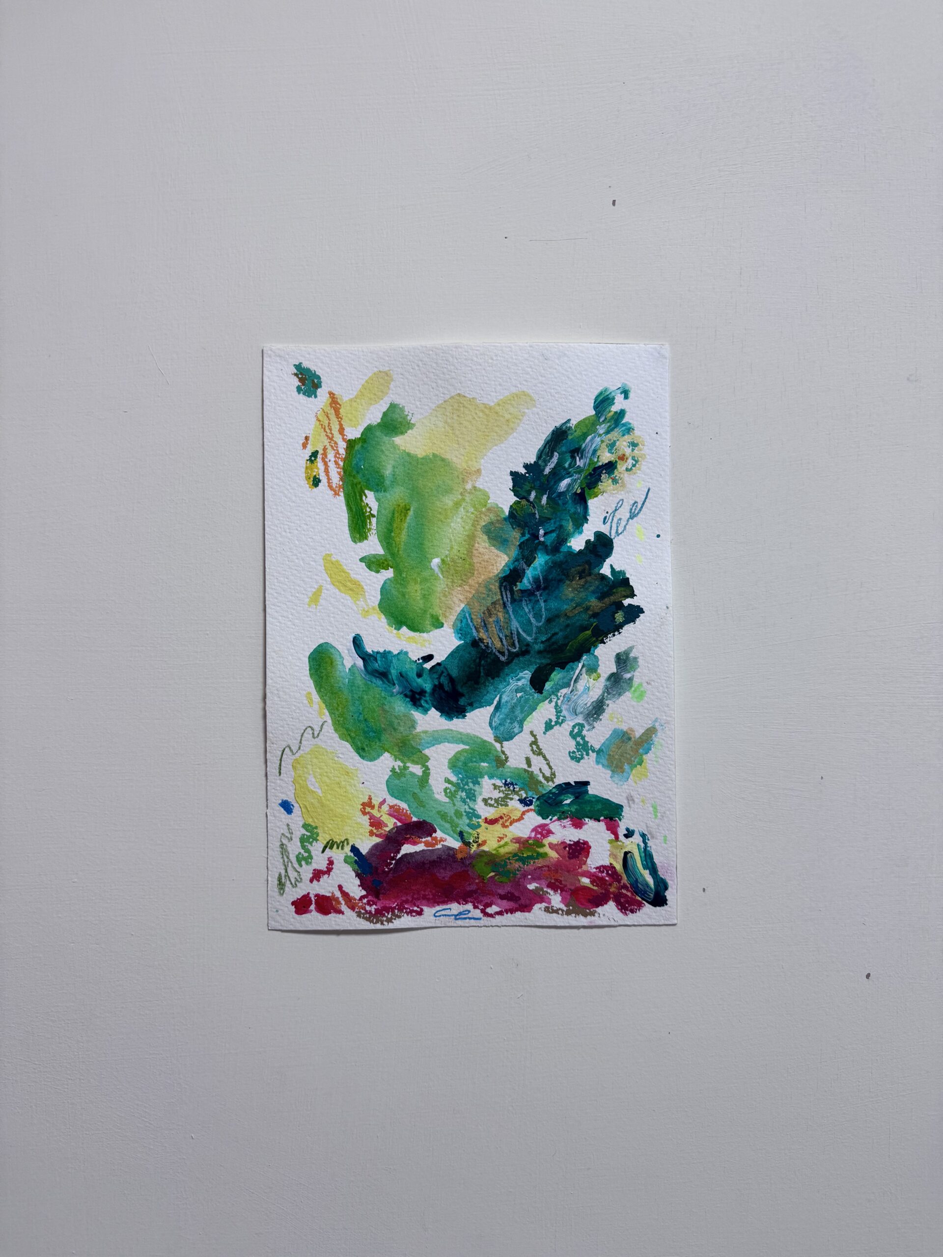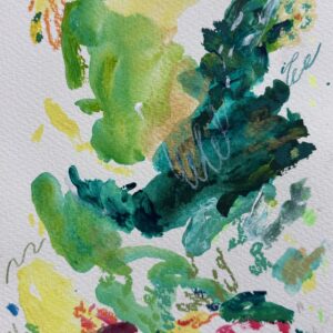 Made with acrylic paint and mixed media on watercolor paper.