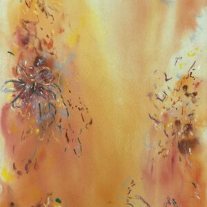 Made with acrylic paint and mixed media on raw canvas.