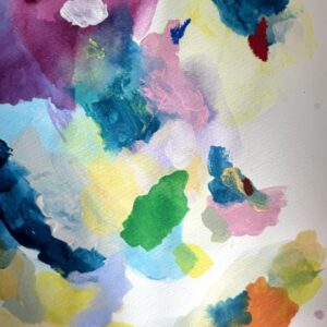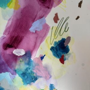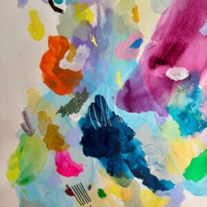 Made with acrylic paint, pencil crayons, and oil pastels on watercolor paper.