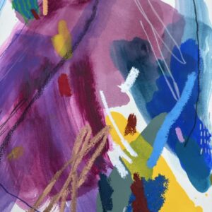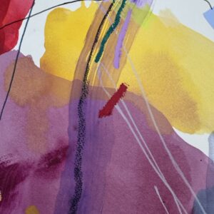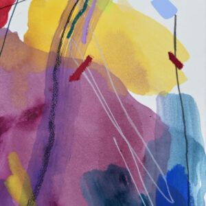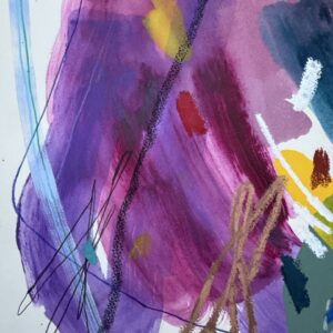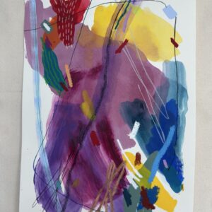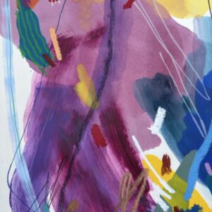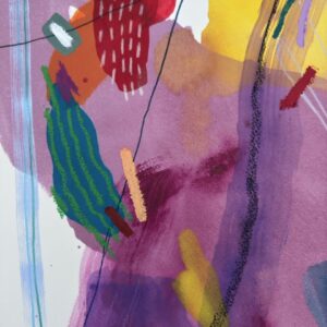 Made with acrylic paint, pencil crayons, and oil pastels on watercolor paper.